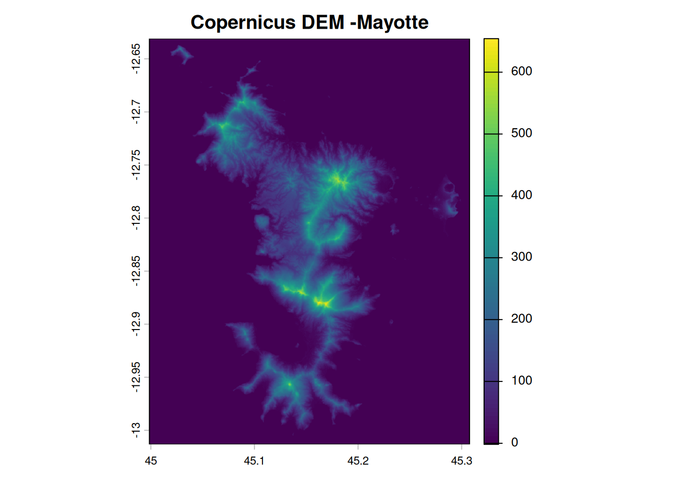 Visualisation de l’élévation de Mayotte (avec le package terra)