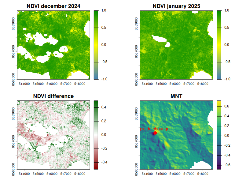 - Différences entre périodes : il faut que la différence soit significative pour montrer, avant même d’étudier l’impact de Chido, qu’il y a eu un changement de végétation entre décembre 2024 et janvier 2025.