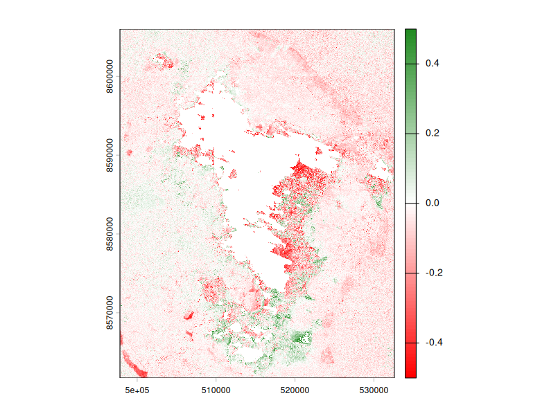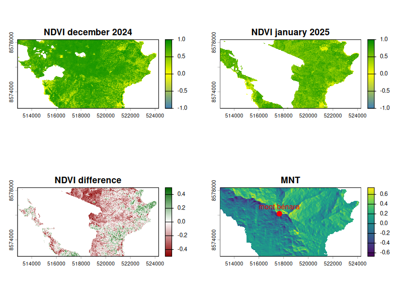 - Regarder la différence de NDVI avec masque de forêt