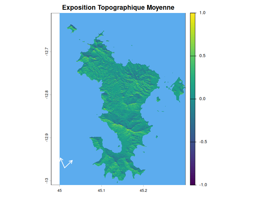 Le principe de la fonction qui permet de calculer l’exposition topographique au vent est expliqué en détails dans l’onglet “Exposition Topographique” avec l’explication des outputs